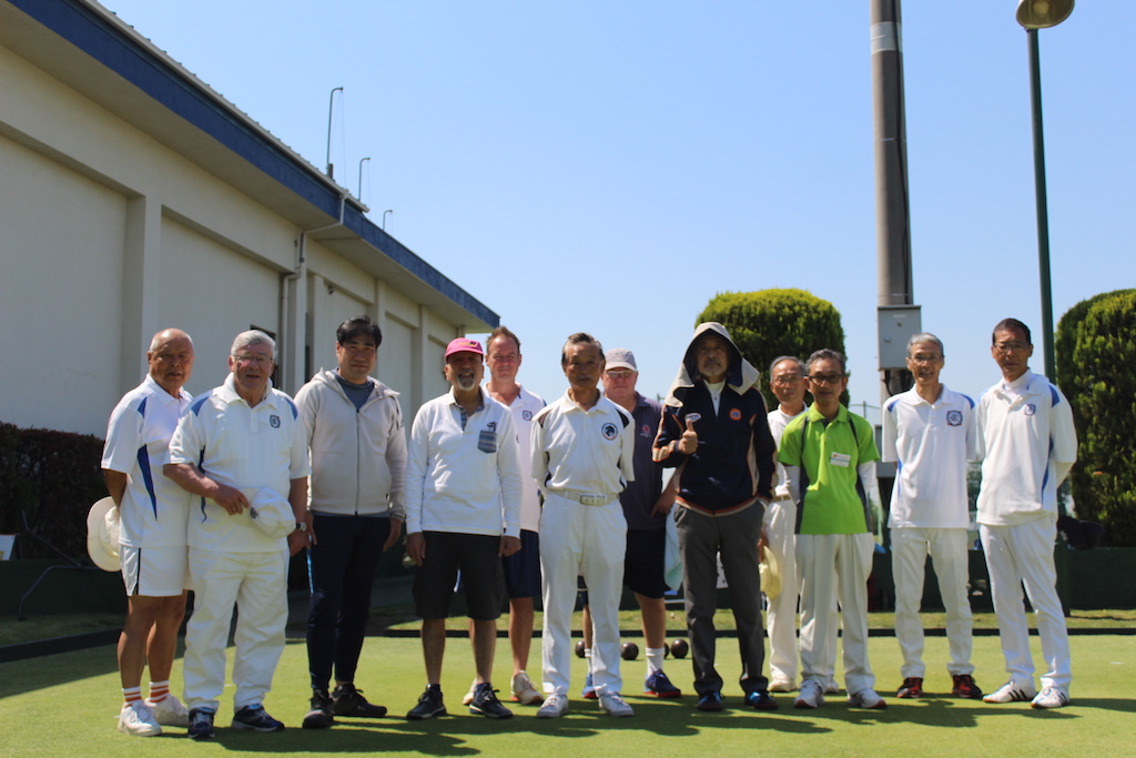 An impressive eight men representing YC&AC took part, and they were joined by two men from Lawn Bowls Tokyo and one from YLBC. The bowlers were drawn into two groups, with the winner of Group A to play the winner of Group B in the final.