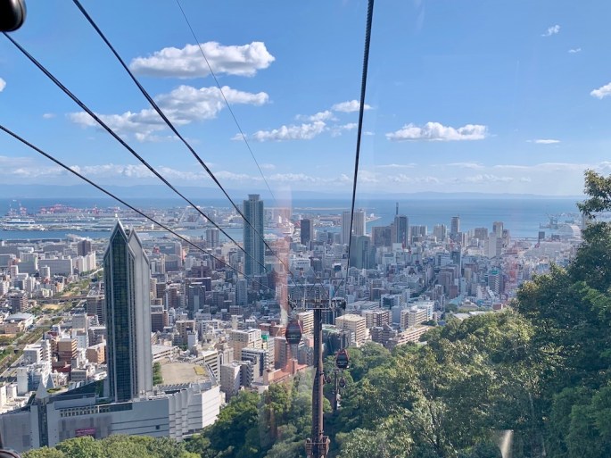 Inspired, I bought a book in the Museum shop and set off in the direction of Sannomiya. The weather was balmy and the signage persuasive. Unexpectedly, I found myself taking the ropeway to the Nunobiki Herb Gardens.