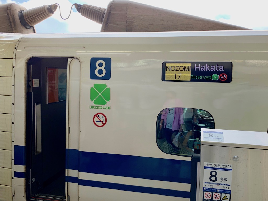 The journey began most auspiciously — a seat in (Lawn Bowls) Green Car no. 8 (八) on the lucky-for-Alex No. 17 Nozomi.