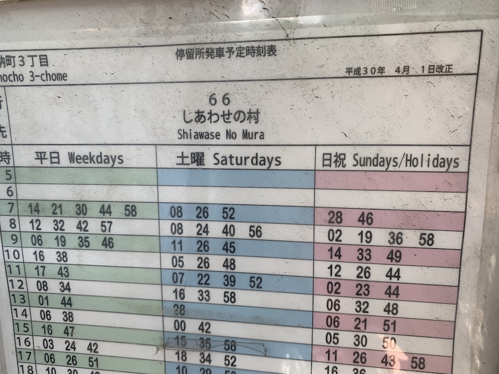 Onwards, and here was another auspicious number. From Sannomiya it’s a no. 66 bus to Shiawase no Mura. 66 is the year I was born. The other big event of that year was England winning the World Cup.