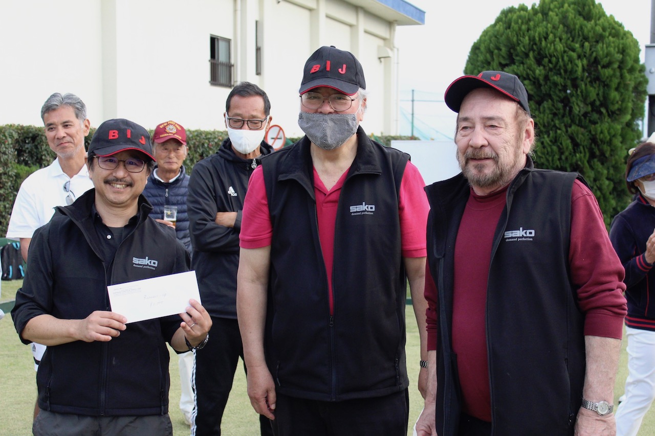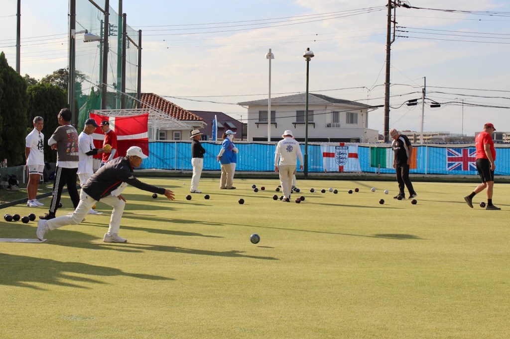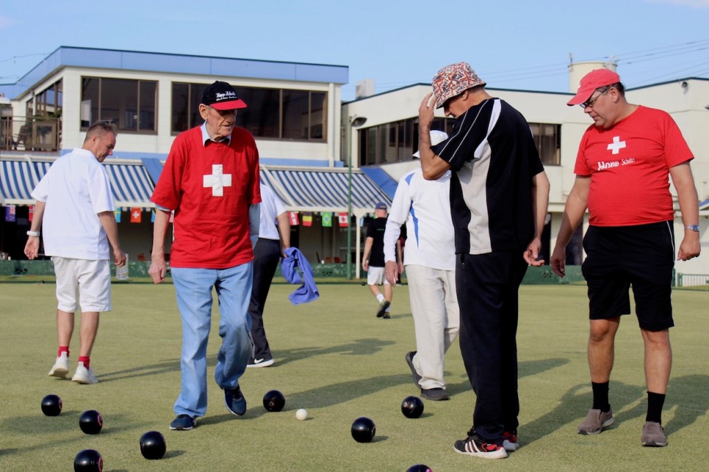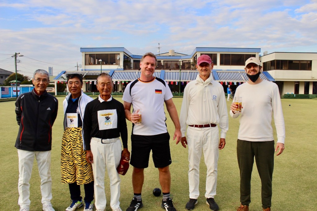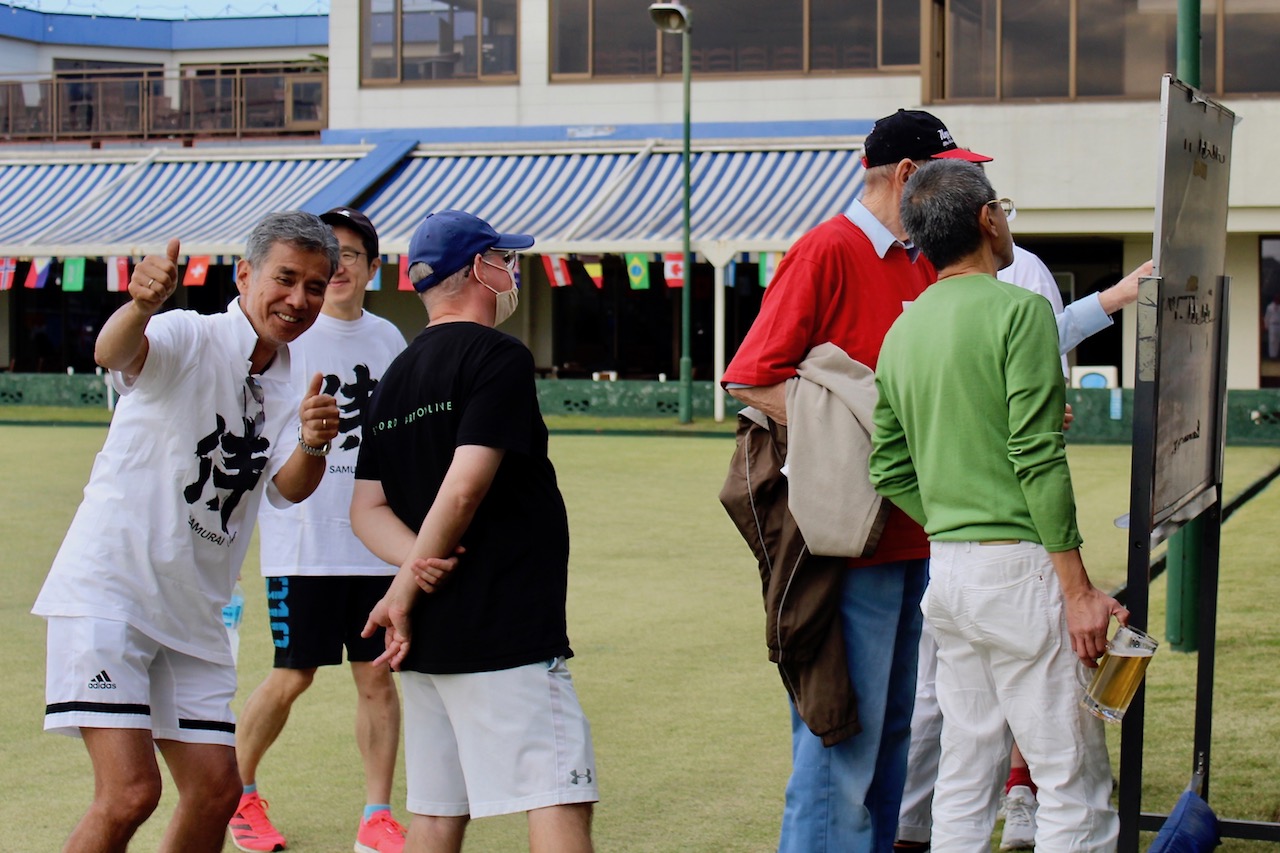 The YC&AC Lawn Bowls Nations Cup and (latest) shield. The tournament was first played (on a non-standard green) in 1920.Black Thunder’s Honjo sends one downShion in action for Hot CurryGeorge-copterThe Swiss do battle with the BritsGreat shot, Hiroko!Wataru measures a close callHide leaves others to do the mathsIn the third-place match, Germany beat Black Thunder with another last-wood winner from skip FosterBlack Thunder’s Honjo, Toshi and Yoda with Germany’s Tom, Paul and FosterTomo and Rich joined the bowlers on the wall to watch the climax of the finalBorn in Japan skip Mike inspects the head before sending down his last wood in the final against Hot CurryRunners-up Born in Japan: Arai, Willy and MikeWinners Hot Curry: Satish, Shion and IshuChampions of the world