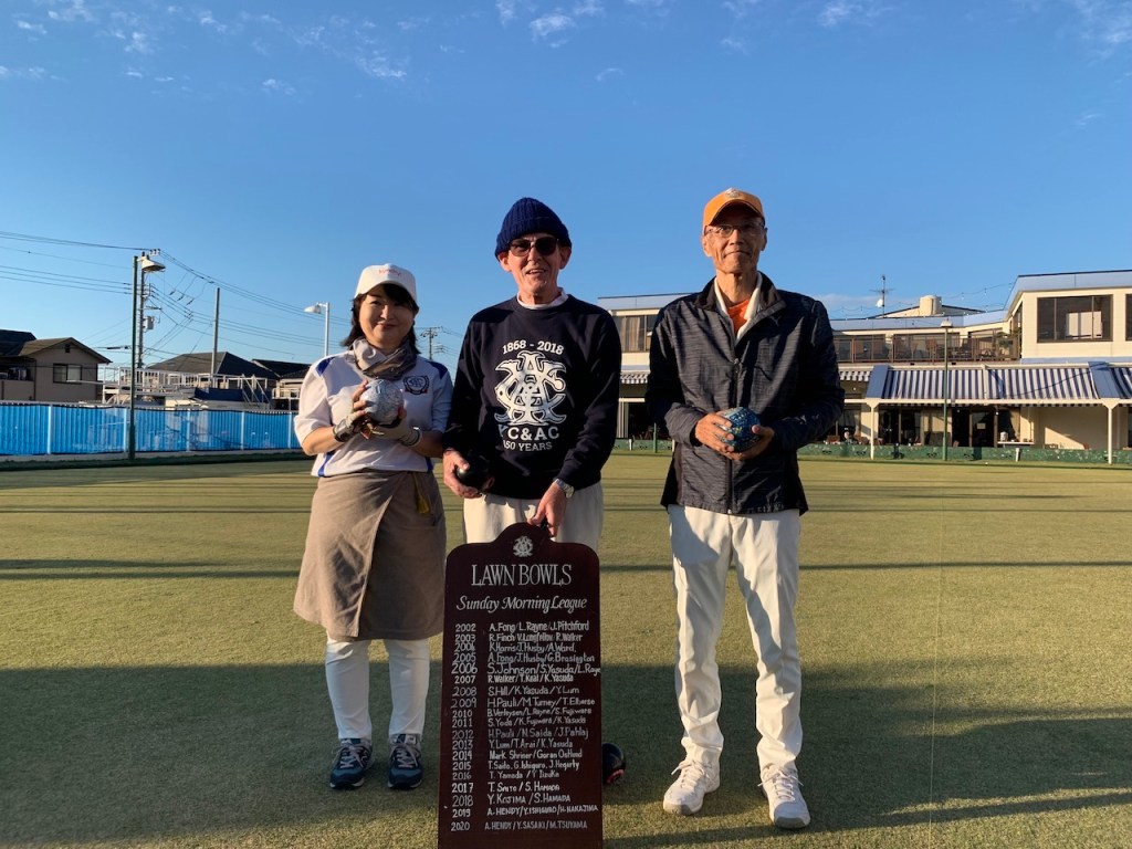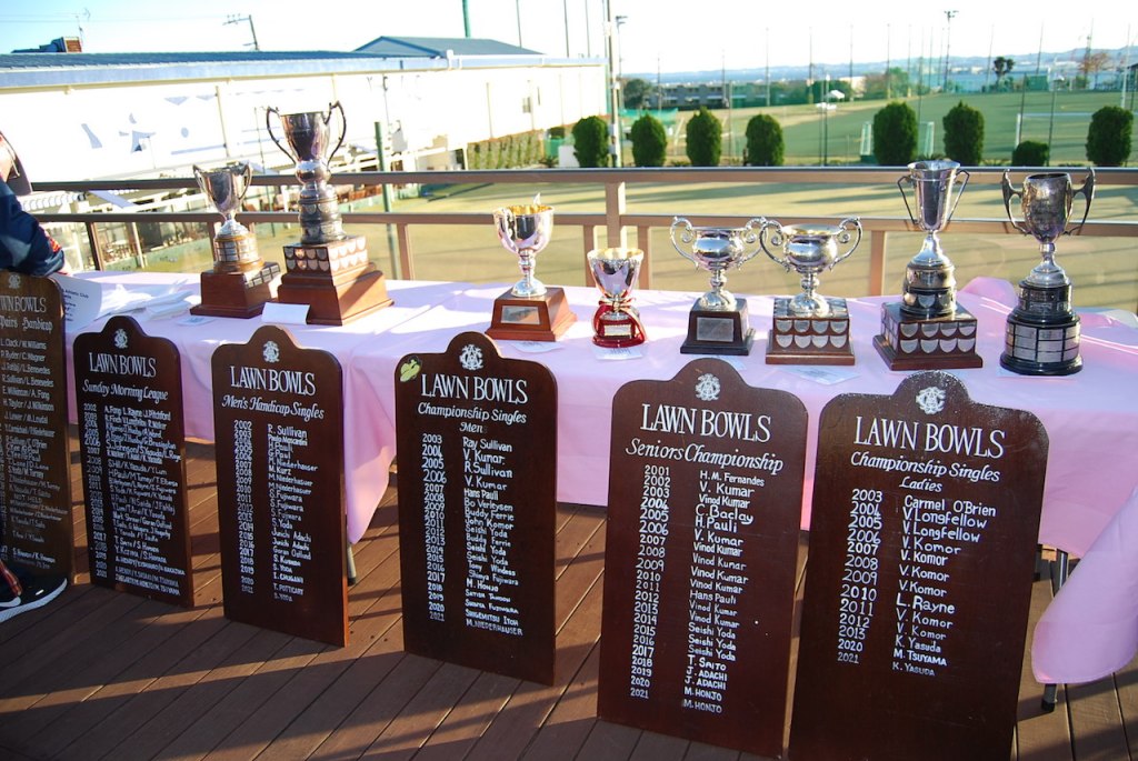 Before presenting the trophies, I shared a slideshow depicting the history of lawn bowls at YC&AC. The idea was to whet the appetite for the 100th anniversary of bowls proper at the Club next year and to suggest one idea for a way to celebrate—a YC&AC v Kobe Lawn Bowls Interport?