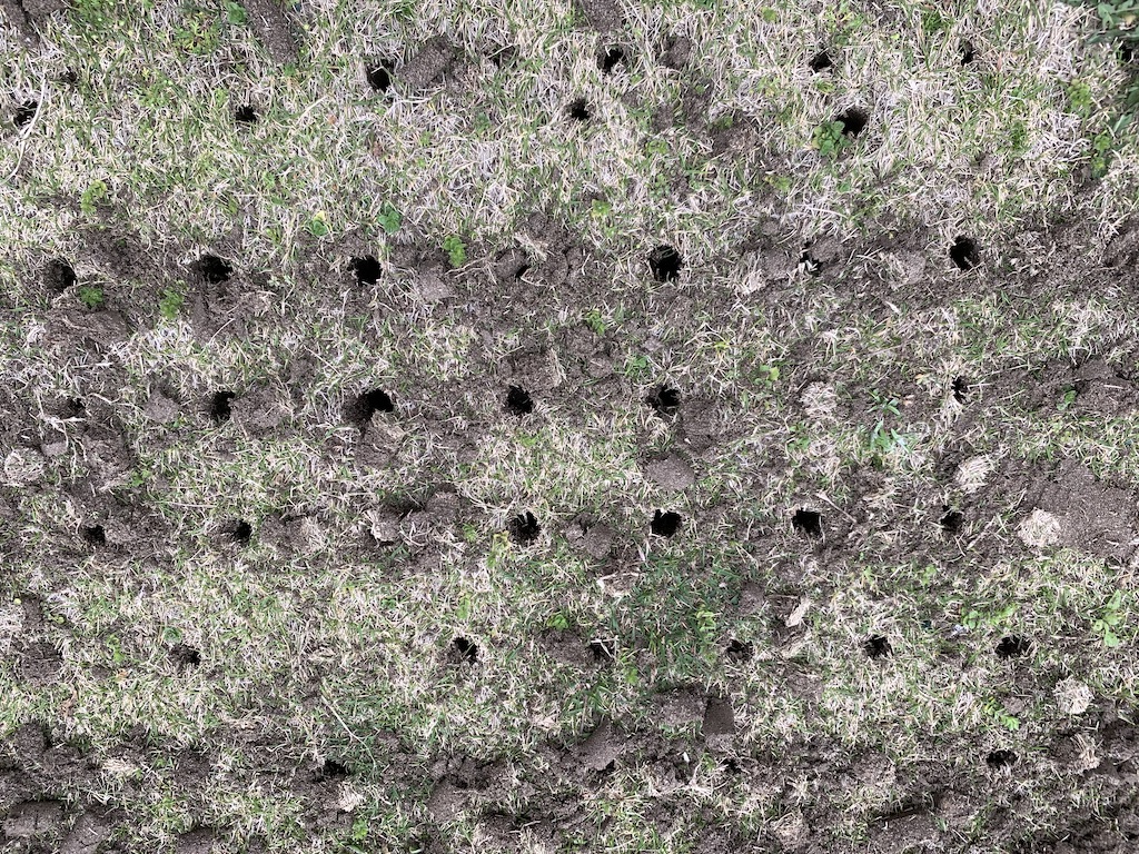 Aeration work was carried out a couple of weeks earlier than last year, at the end of March. A special machine is brought in to remove dead roots and compacted earth.