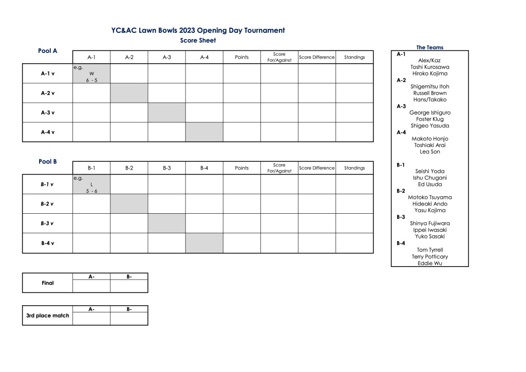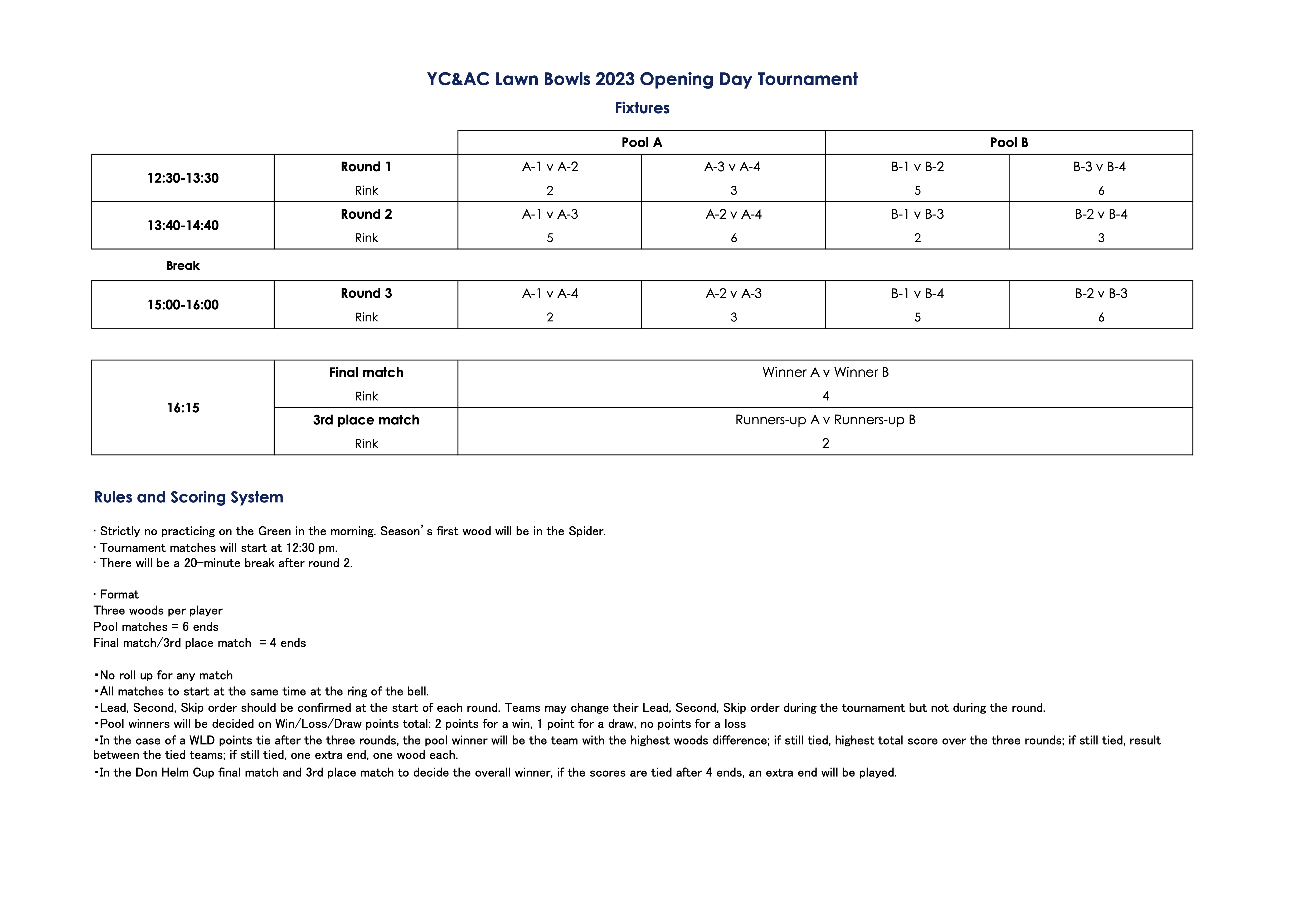 Teams, fixtures, rinks and rules are tabulated below (thanks Kaz!). Click the images to enlarge.