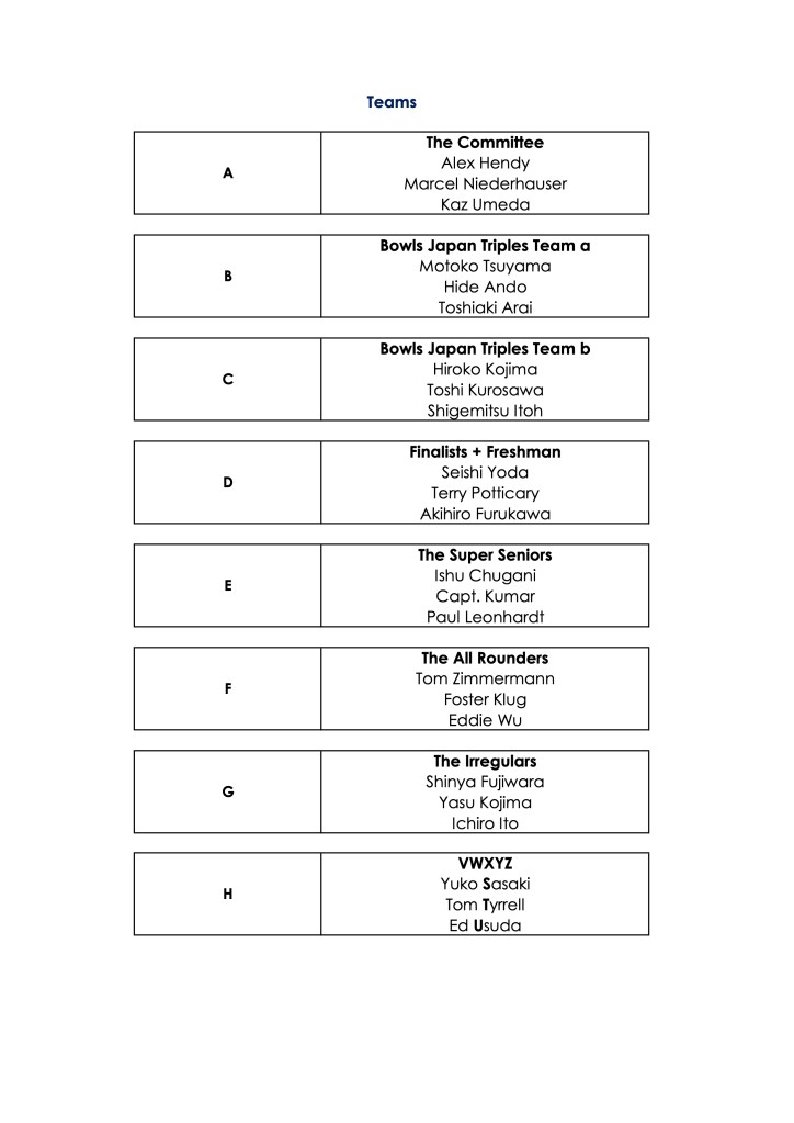The times after the first match at 13:15 are approximations. Each new match will begin at the ring of the bell as soon as all teams are in position.